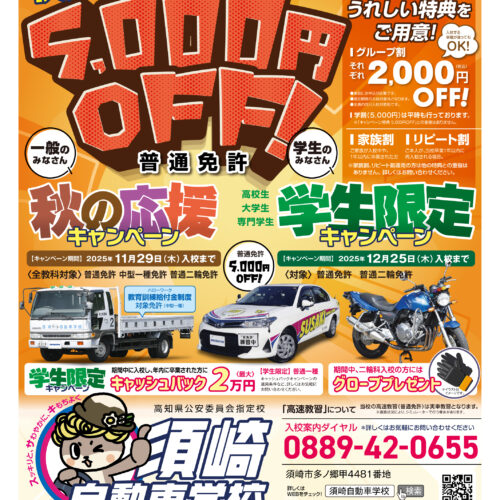 学生限定/秋の応援キャンペーン実施中です。
