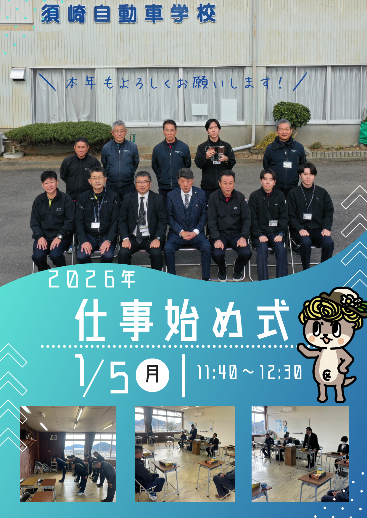 今日から仕事始めです!記念撮影、安全祈願、社長訓示等の仕事始め式を今年も行いました。本年も須崎自動車学校をよろしくお願いします。